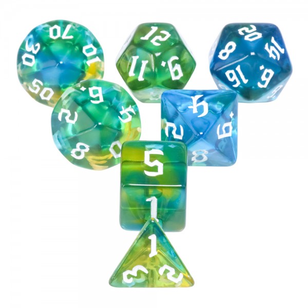 Get ready for your next tabletop adventure with Babble Brook 7pc Dice Set from The Dice Market! Our affordable and resin dice are perfect for adding a personal touch to your game. Choose from a variety of colors and patterns to show off your unique style. Don't miss out on this chance to elevate your game night!