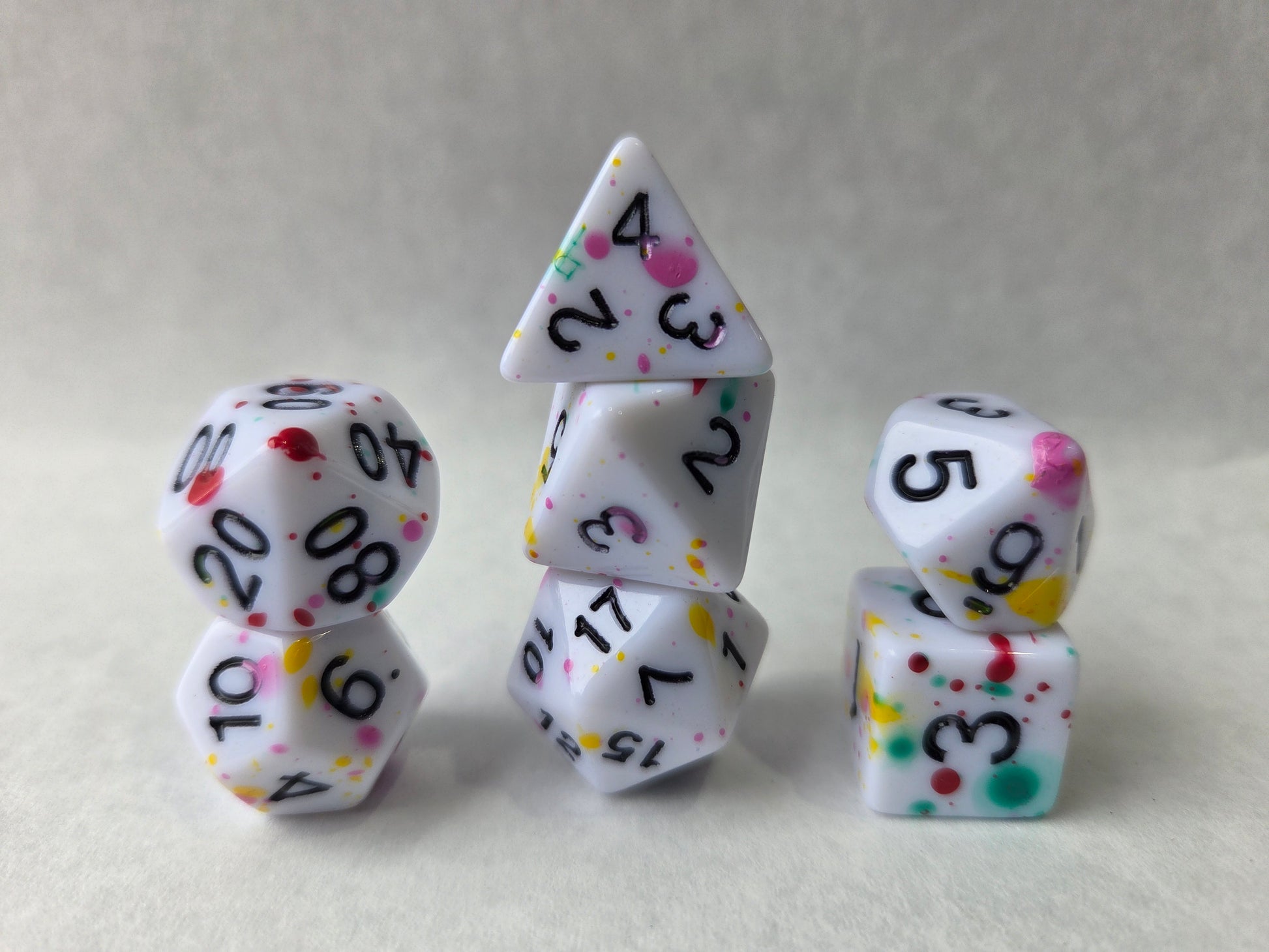 Matisse 7pc Dice Set for TTRPG inked in Black