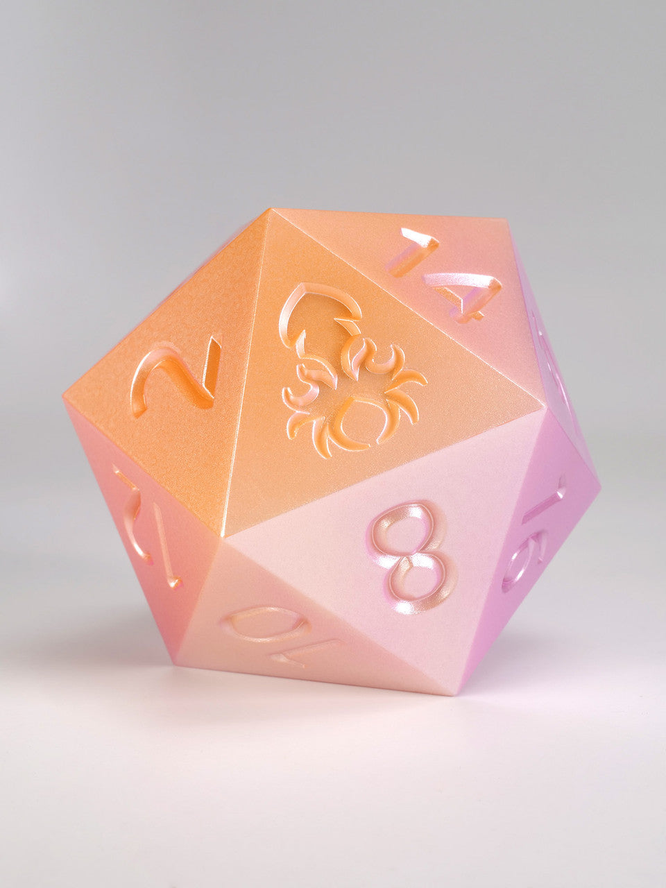 Ombre Marigold to Neon Pink 55mm D20 Dice